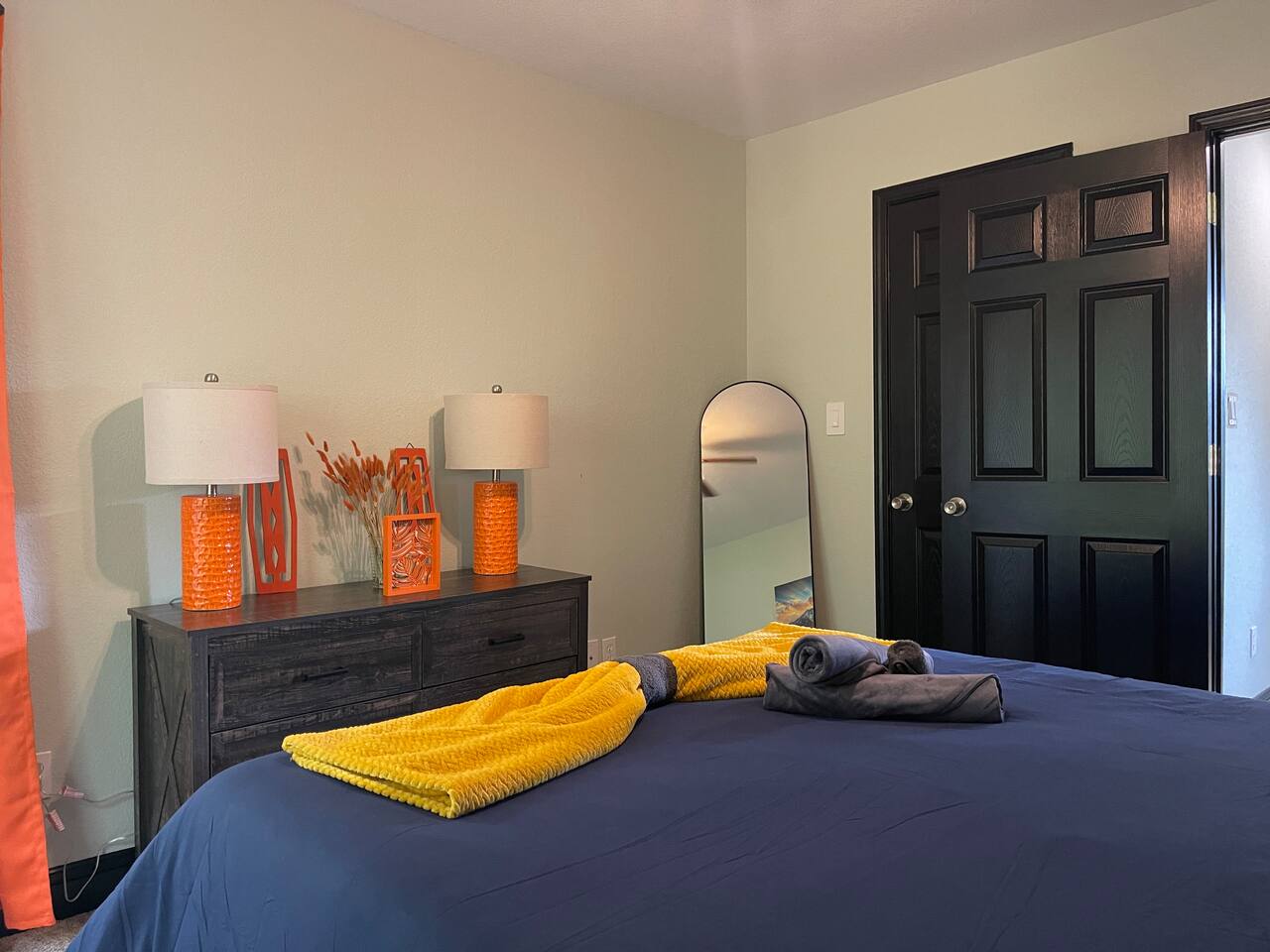 The host may conduct a random identity verification to protect both the host and guest from identity theft and illegal activities. If selected, you’ll receive a link to our portal. There is no cost to you, and the process takes less than five minutes, so please complete it as soon as possible when requested before your arrival. Games, puzzles, books, and children's toys are located on the shelf in the living room. For any guest booking with an initial duration of less than one month, if the guest wishes to extend their stay beyond one month, the Host requires the creation of a new booking rather than altering the existing reservation. Each subsequent monthly extension will also require a new booking. Guests extending their stay beyond one month must also schedule a housekeeping visit within the first week of each new monthly booking, which is included in their new reservation. For initial bookings exceeding 35 nights, a mid-stay cleaning fee will be applied and collected through the platform resolution center monthly. This is necessary to maintain the property in the advertised condition. The mid-term cleaning includes housekeeping for all the bedrooms, bathrooms, kitchen, and living room. Host-provided color linens are the guests' responsibility to launder, but our team will make the beds if the linens have been washed before our housekeeping team's arrival. The cleaning can be scheduled at your convenience, and your presence is not required for it to take place. Please pull the door firmly to close and ensure the digital lock is secured.