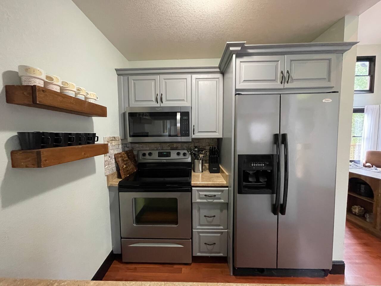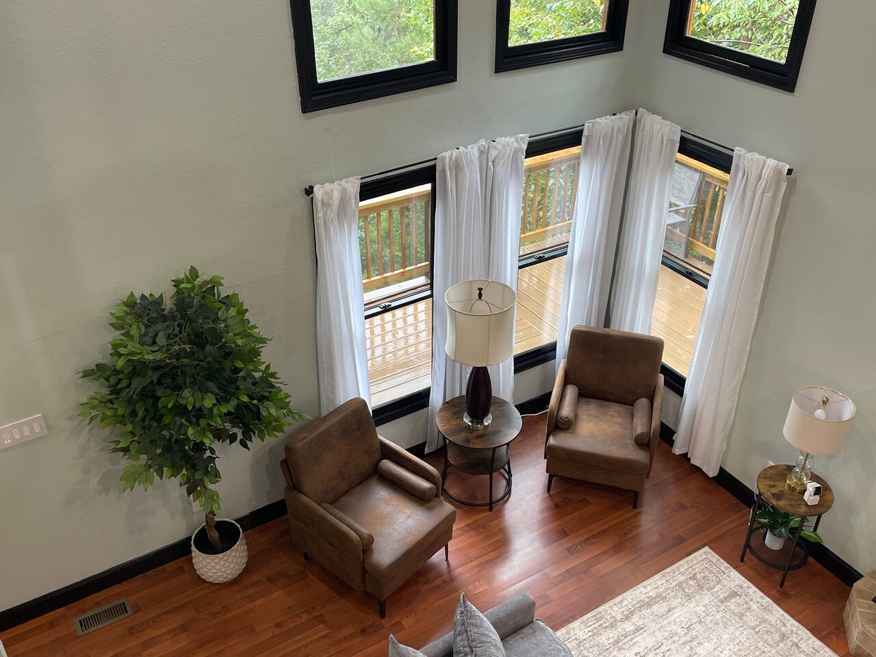 Welcome to your perfect mountain getaway! Nestled at the top of a mountain near Carters Lake in Ranger, Georgia, our recently remodeled 2-story lodge features three inviting bedrooms with queen-sized beds. One bedroom includes a private en-suite bathroom, while two additional bathrooms are located in the common areas. The main level is filled with natural light from large windows that wrap around the dining and living areas, offering stunning views. Step outside onto the two-level deck that half-circles the house and take in the magnificent view of the mountains. You’ll also find a cozy seating area with an L-shaped couch, patio lights and additional seating. Inside, you'll enjoy a beautiful blend of rustic charm and modern décor, with a fully equipped kitchen featuring stainless steel appliances. For entertainment, the terrace level lounge area offers a pool table, a large-screen TV, and a washer and dryer for your convenience. We can't wait to welcome you! TRASH REMOVAL: Remember, you are in the mountains, so trash must not be kept outside to avoid wildlife from being attracted to the home. For that reason, there is no trash service at the home. All trash must be bagged and taken down to the dumpster near the security gate at Talking Rock Creek. If you're coming down the mountain towards the gate, go past the pool area on your RIGHT, drive slowly, and you will see a group of RVs/boats parked on your LEFT. It's the next gravel road on your LEFT. Pull in and you will see the dumpsters on the RIGHT. ACCESSING THE PROPERTY: Once you pass through the Talking Rock Creek gate, the drive to the house is about 2 miles. The road is narrow and winding, with just enough space for two cars to pass. For your comfort, we recommend arriving before dark, as driving at night can feel a bit unsettling. You may also encounter wildlife along the way, so please drive slowly and with caution. Amenities: Bathrooms Full: 3 Main Level Bathrooms: 1 Lower Level Bathrooms: 1 Upper Level: 1 Bedrooms Total: 3 Main Level Bedrooms: 1 Lower Level Bedrooms: 1 Upper Level Bedrooms: 1 Heating & Cooling: Electric Cooling: Central Air Interior Features: High Ceilings, Tile Bath Living Area: 2400 Kitchen Features: Appliances: Electric Water Heater, Dishwasher, Oven/Range (Combo), Refrigerator, Granite Countertops, Airfryer, Coffee Maker, Toaster Oven and More. Laundry Features: Full Size Washer & Dryer, Laundry Closet, In Basement Fireplaces Total: 1 Local Points of Interest Tellus Science Museum in Cartersville, which is about 31 miles away, offers fascinating exhibits on minerals, fossils, and more. River Street Tavern in Ellijay is about 19 miles away and offers live music and local brews. Engelheim Vineyards, also in Ellijay and about 11 miles from the lake, is a lovely spot for wine tastings and tours. There are also some great hiking trails, like the Oak Ridge Nature Trail, which provide scenic views of the lake. And of course, Carters Lake itself is known for excellent fishing opportunities, with species like bass, crappie, and catfish.