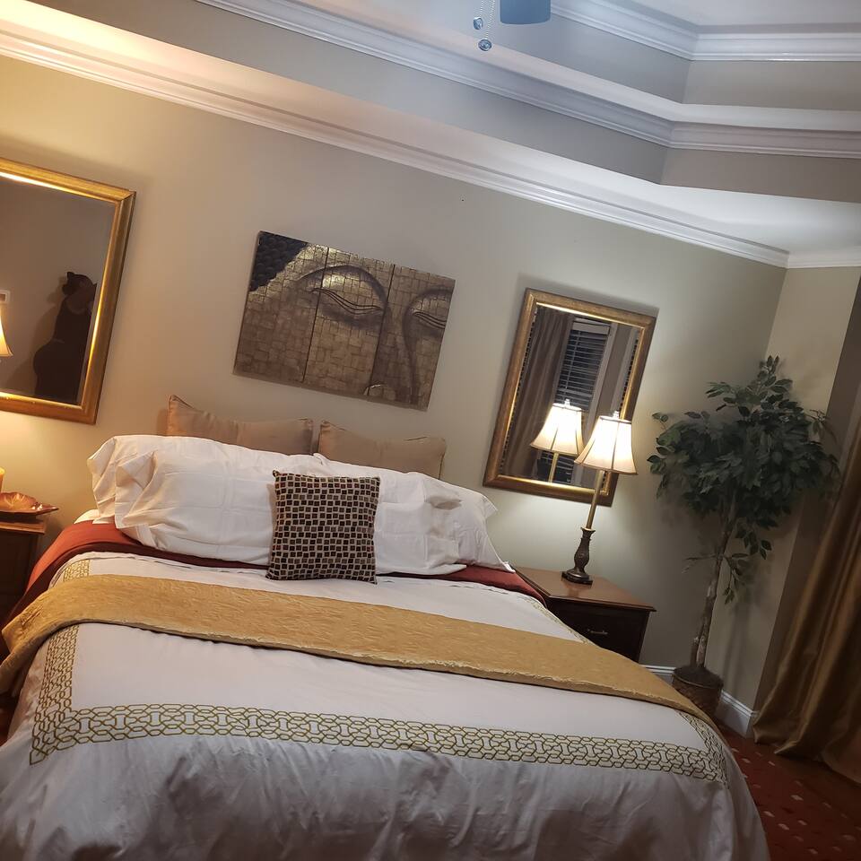 Thoughtfully designed with elegant decor and timeless finishes, the home boasts spacious living areas, a gourmet kitchen, and serene outdoor spaces perfect for entertaining or unwinding. Each room flows seamlessly into the next, creating a sense of space and sophistication ideal for hosting family and friends. The main level features a light-filled open-concept layout with elegant touches, while the upstairs bedrooms offer privacy and tranquility. The owner's suite is a peaceful retreat, while the additional bedrooms provide comfort and flexibility for families of all sizes. From the moment you step inside, you're greeted by warmth, natural light, and a sense of refined Southern charm. PLEASE NOTE: This property is located in an upscale, close-knit residential community where neighbors value peace, privacy, and a sense of security. They’re attentive to their surroundings and are naturally curious about new faces in the area. To help maintain a comfortable atmosphere for everyone, we kindly ask guests to be respectful of the neighborhood and keep interactions with neighbors to a minimum. For this reason, we provide garage entry and access to the property for your convenience. Your cooperation ensures a smooth and enjoyable stay for all. Enjoy the charm of Marietta Square just a short drive away, along with convenient proximity to I-75 for quick access to downtown Atlanta or Hartsfield-Jackson Airport. Whether you're looking for an established neighborhood with character or an elegant home with modern comfort, this West Cobb gem truly has it all. Key Features of The Property ● 5 Spacious Bedrooms: A plush king-size bed in the master bedroom and three queen-sized beds ensure restful nights with Smart TVs in each room. The owner's suite features a HUGE walk-in closet for guests staying for longer periods a time. ● 3 Full Bathrooms: Stocked with towels and complimentary toiletries. ● Modern Kitchen: Fully equipped with appliances, cookware, and all the essentials for dining in. ● Dining Room and Dining Area: This property has two areas to dine with your family. It has a dedicated dining room with a sleek black and gold contemporary table set. It also has a dining area in the kitchen with a traditional table set seating six. ● Living Room: Relax on the cozy sofa while streaming your favorite shows on the 65-inch Roku TV. This property also boasts a separate sitting room for additional seating. ● Private Entrance: Enjoy peace and privacy with your secure garage entryway. ● Outdoor Deck: A charming space to sip coffee or unwind after exploring with a charcoal grill. Key Amenities ● Free high-speed Wi-Fi for work or streaming. ● Central heating and air conditioning for your comfort year-round. ● On-site parking for your convenience in the garage. ● Washer and dryer for longer stays. ● Parking for 4 cars. Major Attractions in the Area Located just minutes from The Avenue West Cobb, boutique shopping, dining, top-rated schools, and Kennesaw Mountain trails, this property offers unbeatable access to everything that makes West Cobb one of metro Atlanta’s premier communities. Whether you're looking for an established neighborhood with character or an elegant home with modern comfort, this West Cobb gem truly has it all. Kennesaw Mountain National Battlefield Park – ~3 miles northwest, offering 17+ miles of hiking trails, Civil War history, and scenic overlooks atop Kennesaw Mountain. The Avenue West Cobb – ~4 miles southwest, this open-air lifestyle center includes Target, Whole Foods, a variety of shops, restaurants, and entertainment options (inferred as a major local hub). Marietta Square (Glover Park) – ~7 miles southeast, the historic downtown offers a park, boutique shops, art galleries, local dining, seasonal festivals, the Strand Theatre, and the Marietta/Cobb Museum of Art. Strand Theatre – ~7 miles away in Marietta Square, a beautifully restored Art Deco venue for live performances, classic films, concerts, and community events. Marietta/Cobb Museum of Art – Also ~7 miles away in the downtown square, featuring rotating visual arts exhibits in a historic building. The “Big Chicken” (KFC landmark) – ~6 miles east, this iconic 56-foot KFC structure is not only a fun photo stop but also a local navigational landmark and pop culture icon. Noonday Creek Multi-Use Trail – ~2.5 miles away, this 7‑mile scenic trail is perfect for biking, walking, or jogging along the creek. Aviation History & Technology Center (Marietta Museum of History’s Aviation Wing) – ~6 miles south, featuring restored military aircraft including a C‑141B and Lockheed JetStar. Kennesaw House / Marietta History Center – ~7 miles southeast, this historic 1845 building includes interactive exhibits and storytelling about local history. Gone With the Wind Museum (Brumby Hall) – ~7 miles, a cinematic museum located in historic downtown Marietta. Marietta Confederate Cemetery – ~7 miles, a solemn Civil War-era cemetery overlooking downtown. Whitlock Avenue Historic District – ~6 miles southwest, this charming neighborhood features 19th- and early 20th‑century architecture. Andretti Indoor Karting & Games – ~5 miles south, a go-kart track and family entertainment center offering laser tag, VR, arcade, and bowling. Additional family-friendly spots just a short drive away include: Panola Mountain State Park – ~15 miles southeast; offers unique hiking trails on a granite monadnock, plus archery, geocaching, and guided nature programs. The Battery Atlanta (in Cumberland) – ~12 miles south, near Truist Park, featuring shops, restaurants, entertainment, and the Battery complex