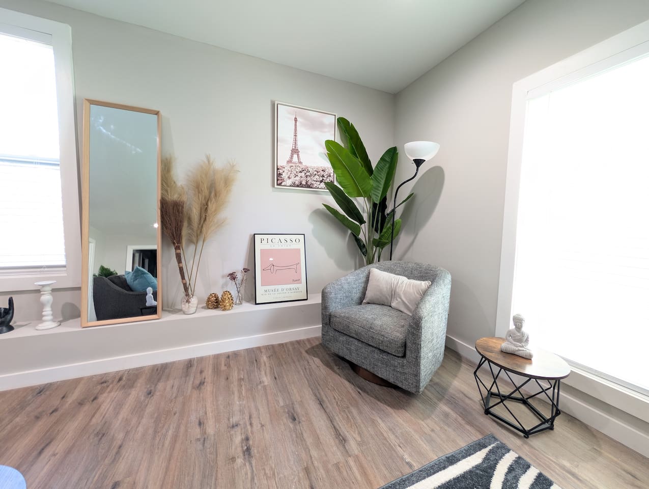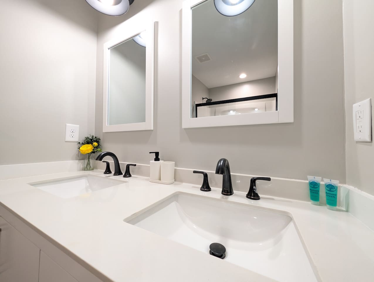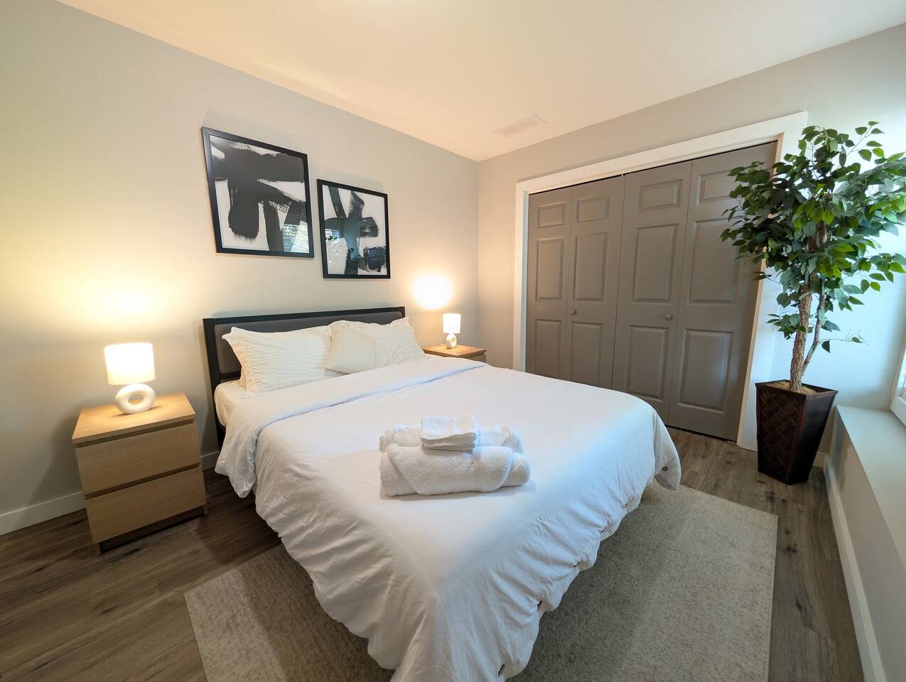 Bedrooms: 2 bedrooms offer a peaceful retreat, each thoughtfully designed with plush bedding, ample storage, and natural light. Imagine sinking into a cloud-like bed after a day exploring Atlanta. Bathrooms: Two sparkling bathrooms feature modern fixtures and refreshing showers, ensuring everyone has their own space to prepare for the day or unwind in the evening. Living Spaces: Gather with loved ones in the open-concept living areas, complete with comfortable seating, stylish decor, and large windows that flood the space with natural light. Dedicated workspace: Equipped with comfortable seating, desk space and TV for a comfortable working environment.