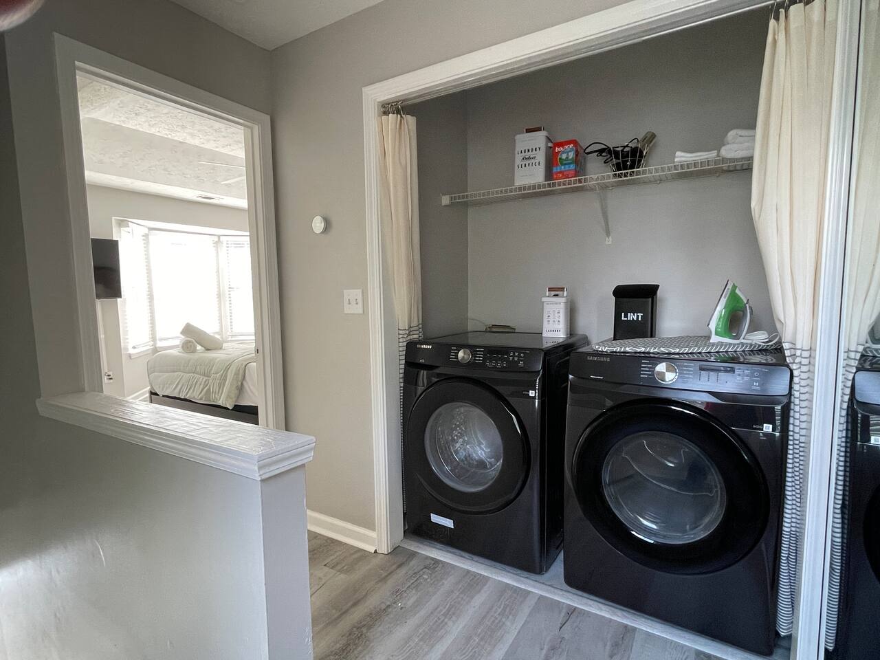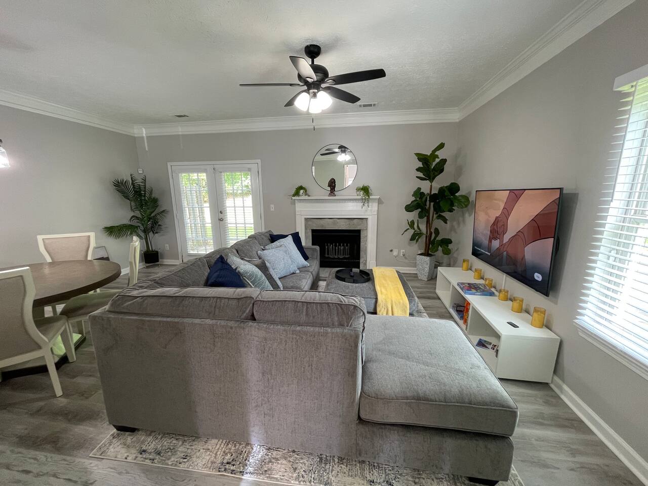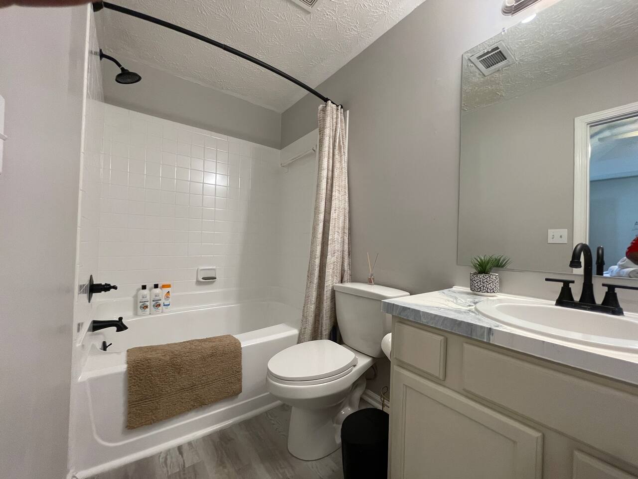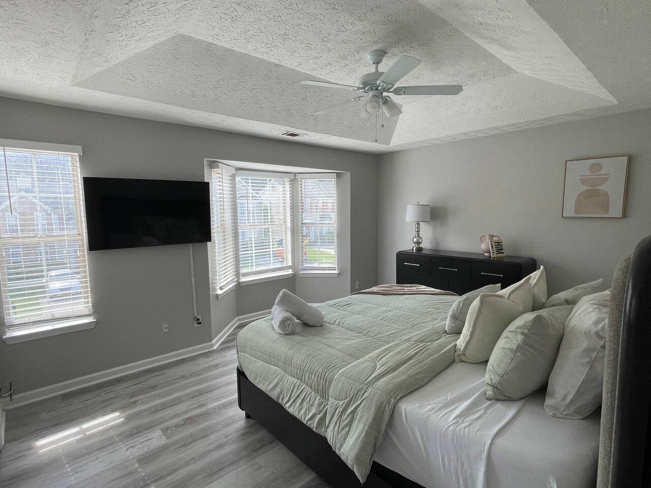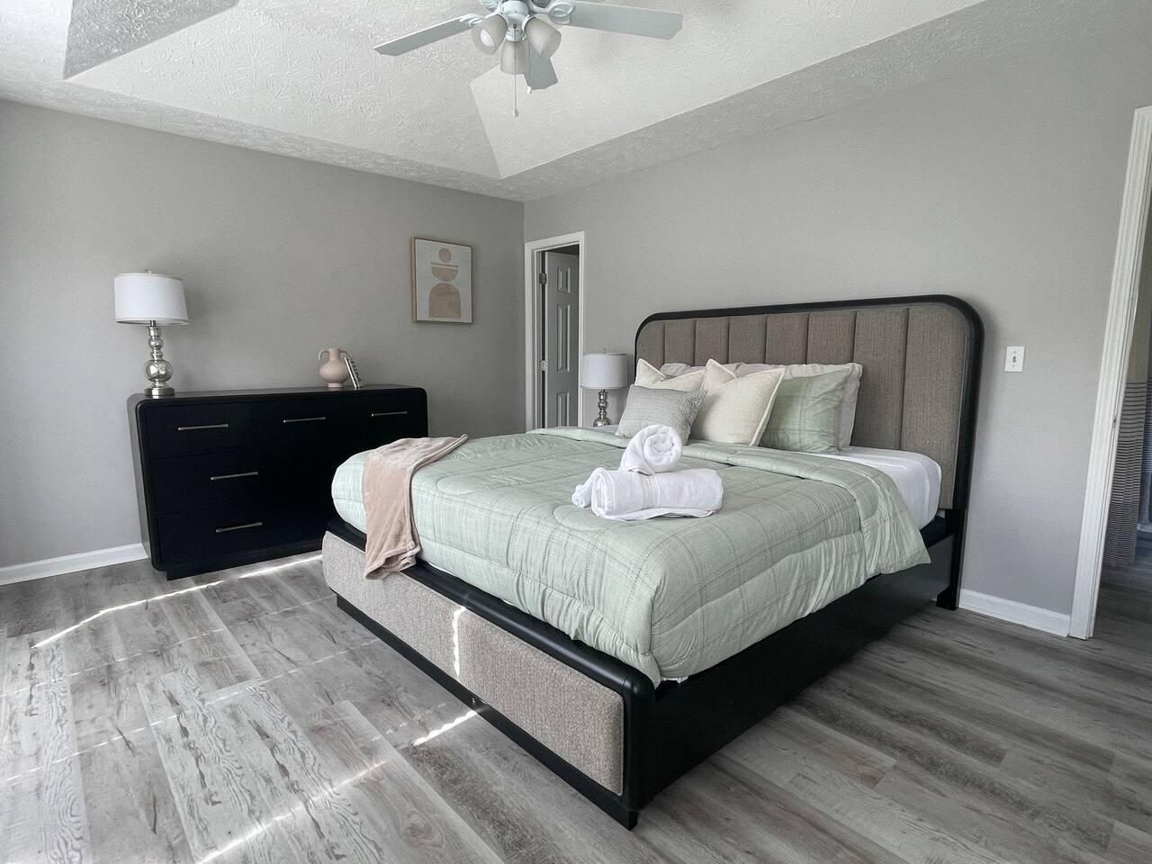- Spacious & Modern Design – Thoughtfully furnished with a sleek, open-concept layout, high ceilings, and abundant natural light. - Comfortable Bedrooms – Well-appointed rooms with ample storage and a relaxing atmosphere. - King Size Bed - Relax in a plush king-sized bed with layers of soft pillows and a cozy blanket. The master bedroom features a chic, upholstered headboard and neutral decor for a boutique hotel feel. - Queen Size Bed - End your day in this comfy will well-styled bed with plenty of dresser space for a longer-term stay. - Fully Equipped Kitchen – Black appliances, modern cabinetry, and all essentials for home-cooked meals. - Cozy Living Area – Smart TVs (living room and all bedrooms), high-speed WiFi, and comfortable seating for relaxation. - Convenient Parking – Private parking for guests for 2 cars. Prime Location This property is in a prime location to be able to access all that Atlanta has to offer in a mature but quiet neighborhood. Gateway Center Campus Just a short drive away, this hub includes the Georgia International Convention Center (GICC), Gateway Center Arena, and several hotels and dining options. The ATL SkyTrain offers a complimentary 2-minute ride connecting the campus to Hartsfield-Jackson Atlanta International Airport. Gateway Center Arena Home to the College Park Skyhawks (NBA G League) and the Atlanta Dream (WNBA), this 100,000-square-foot arena hosts various sporting events and concerts. Historic College Park Golf Course Established in 1929, this nine-hole course offers a charming golfing experience amidst mature trees and well-maintained greens. Wikipedia Local Parks and Recreation Enjoy outdoor activities at nearby parks such as Barrett Park, Brenningham Park, Jamestown Park, and Richard D. Zupp Park. Recreation centers like the Wayman & Bessie Brady Recreation Center and the Hugh C. Conley Recreation Center offer various programs and facilities. Explore Georgia Proximity to Downtown Atlanta Downtown Atlanta is easily accessible, offering attractions like the Mercedes-Benz Stadium, Georgia Aquarium, World of Coca-Cola, and Centennial Olympic Park.