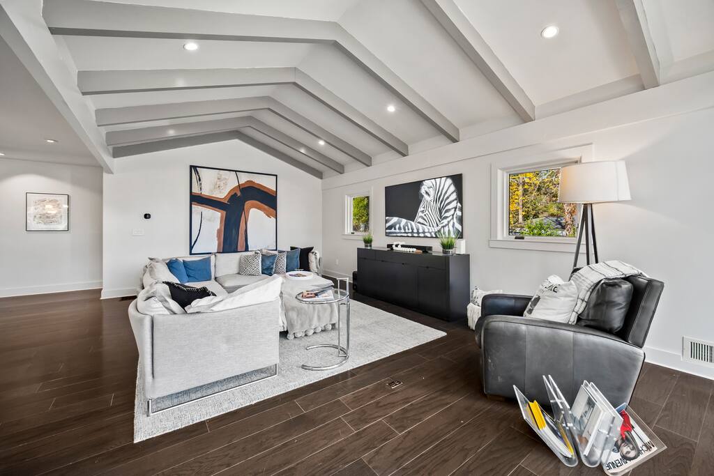 KickWelcome to The Lakehouse - ATL! Escape to Atlanta’s most exclusive hidden gem. Tucked away in a serene private community within the City of Atlanta, this luxurious gated 5,500 sq ft estate offers unparalleled privacy and sophistication, yet is just minutes from all of Atlanta’s main attractions. Overlooking a pristine, private lake, the property feels worlds away from the bustle of downtown, evoking the tranquility of a remote mountain retreat. back and relax in this calm, stylish space.